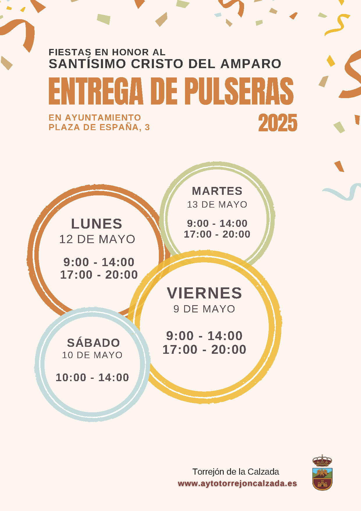 Los días habilitados para la recogida de pulseras en el ayuntamiento será: